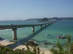 田んぼが一段落したので(以前から)一度訪ねてみたいと思っていた山陰西長門のツノシマ(角島)へ行ってみた。この島は2000年、海に架かる大橋が完成し本土と繋がった。それを機にじわじわ人気が出て来て今では隠れたスポットとして人気がある。角島大橋は通行無料の橋としては日本で2番目に長い橋だという。近代的な橋と白い砂浜、エメラルドグリーンの海はとても日本海とは思えない。南国沖縄あたりの風景だ。近くを対馬暖流が流れている影響だろうか?全長1千780mの橋を渡ると自然豊かなのどかな風景が広がる。島の端から端までの全長は3~4kmほどくらいか?
