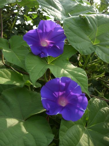 連日猛暑日が続いている。庭のあちこちに這わせている朝顔が次々に咲き始めた。在来種から宿根性琉球朝顔など多種植えてあるが(まず)一番咲きは天道生え在来ものである。透き通るような碧色は見事な色である。