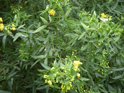 庭の「花センナ」に今年も黄橙色の花が咲いた。南米原産のマメ科の花木で9~10月にかけてびっしりと花を着ける。別名「アンデスの乙女」とも呼ぶ。我が家の樹は樹齢10数年になる。つい最近までは名前を知らなかった。過日知人を通じ専門の方(現役時代に高校の生物の先生をやっていたという人)に尋ねたところ花センナだと教えてもらった。さすがに餅は餅屋だと感心したものだ。