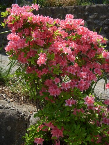 自家の坂(取り付け付近)の石垣の中に小ぶりの山躑躅(ヤマツツジ)が生えている。色は艶やかなピンク色で毎年良く花を着ける。あの日は今日のように抜けるような青空で汗ばむほどの好天だった。24年前の5月4日に父は逝ったのだが翌5日は「葬送の日」だった。当時は今の様な「葬祭場」での葬式は稀で(一般的には)「自宅葬」が主流だった。どの集落も隣組(講中)の皆さんが互助の精神から総出で葬送の儀を手伝ってくれていた時代だ。