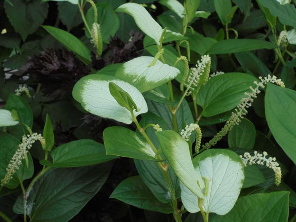暦の上で夏至(げし)から数えて11日目を半夏生(はんげしょう)という。半夏生の花はこの頃に(夏の初め)咲く。別名「半化粧」とも呼ばれる。葉の色が半分白くなり、まるでお化粧をしたようなのでそんな名前で呼ばれるようになったらしい。葉先に穂のような形をした花が咲く。ドクダミ科の多年草で露地に植えておくと毎年そこから芽が出て花が咲く。地下茎で増えるので周辺に広がり生育は旺盛である。我家の庭の半夏生も次第に葉の白さが目立つようになった。