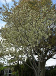 我が家の裏山(南西)に接する隣家Aさん宅では「御衣黄桜」が満開を迎えている。ギョイコウザクラは貴族の衣服の萌黄色に近いことからその名前が付いたという。京都の「仁和寺」に植栽されていたのが始まりとされる。花弁が黄緑色をした八重ザクラの一種である。Aさん宅の桜は樹齢が20年生くらい。Aさんが現在地に移り住んだ時自生していた樟の木の隣に1本友人から貰って植えたらしい。(当時は)それほどの珍種とは知らなかったという。当地域ではあまりない見かけない品種とかで昨日昼頃にNHK(北九州)が取材に来てニュースで放映された。ほんの一瞬だったが八十半ばのAさんはこの放映に感激し(今後も)桜の樹を大切にしたい…と大変喜んでおられた。
