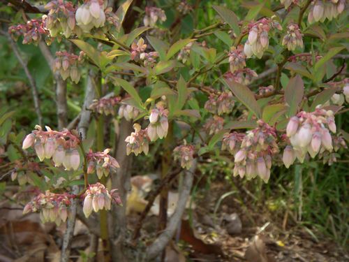 我が家に数十本植えてある「ブルーベリー」に花が咲いている。ブルーベリーはツツジ科の仲間らしく(ドウダンツツジに似た)釣鐘状の可愛い花をいっぱい着けている。紫色の果実が実るのは7月くらいになる。