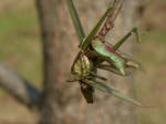 数日前より柿、李の剪定作業をやっている。樹園地は野鳥たちの楽園である。メジロ、ヒヨドリ、カチドリ、ジョウビタキ、ハト、カラスなどが目の前をしょっちゅう行き交う。果樹の細い小枝のあちこちにモズ(百舌鳥)がハヤニエ(早贄)を残している。秋に(冬季に備え)保存食として捕っておくという説や獲物を食いちぎるのにいったん枝に刺して食べ易くするという説などいろんな説があるが「早贄」の真相は定かではない。刺した獲物はカエル、バッタ類、ミミズ、ムカゼ、クモ類などが多い。(聞くところによると)刺した位置は(その時々の)雲の動き見て記憶?するらしいが…刻一刻変化する雲では目印にはならないのだが…もっとも、食べる際は誰が刺したのでも良いということなのだろう。もともと互助の精神を持ち合わせているということか?