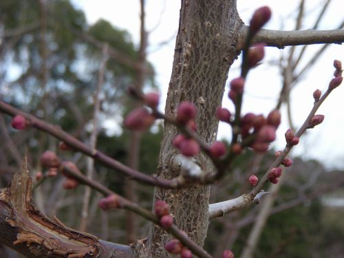 裏山の梅の蕾が少しずつ膨らんで来た。我が家には自給用(梅干し、果実酒など)のものだが梅が十数本植えてある。先日の剪定後、急に蕾が膨らんだように感じる。白加賀、豊後、信濃小梅、鴬宿、甲州最小、南高、紅梅など(開花時期は)少しずつずれるが春を告げる花である。