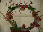数日前から夫婦で(整備中の裏山で)集めていたクズ(蔓)、松毬、ヤシャブシの実、ツルウメモドキ、野薔薇、山帰来の赤い実とキウーイの蔓などを使って(連れ合いが)華道仲間数人とクリスマス用リースを作った。今回はほとんど花屋で買い求めるものもなく(全員分)我が家で自給出来たため大輪の立派なものが出来(皆さん)喜んで持ち帰ったらしい。