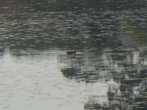神社境内には大きな池がある。土手を登り池畔に行くと水草の繁る水面に「カイツブリ」がスイスイ泳いでいた。久しぶりに見かけたのでデジカメのシャッターを切った。(昔)子供の頃、この鳥は田舎の方言で「ケーツン」と呼んでいたが…成人し(後年)正式名が「カイツブリ」であると知った。湖沼に生息し、冬期に良く見かける。体長は25cmくらいで全体が黒褐色、尾羽がなく飛ぶのは苦手な鳥で(もっぱら)水上で生活する。