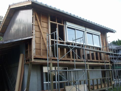 雨漏りしていた「離れ」の改修が順調に進んでいる。屋根瓦の葺き替えが終わり、外壁、窓工事が本日ほぼ終わる。内部の床の張り替え、電気工事なども併行して進んでいる。大工の棟梁さんはO県U市の人で一緒に見える職人さんはN市の親子連れ、実に良心的な仕事をしてくれて助かる。月末の完成に向け大きな台風など来ないよう祈っている。