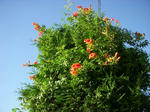 暦の上で今日は「大暑」。一年中で最も暑い時期とされている。庭のヒノキの根元に植えてある「ノウゼンカヅラ」に橙黄色の花が次から次へと着き(蜜を求めて)アゲハチョウが纏わりついている。夏の季語にもなっているノウゼンカヅラは例年この時期(暑さに負けずに)元気な花相を見せる。