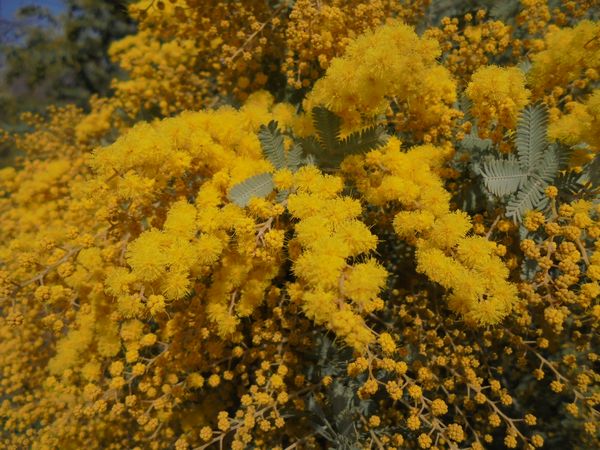 裏山ではミモザアカシアの黄色いふわふわした花が風に靡いている。ミモザアカシアを10数本植えてある。道行く人や散策の客がカメラ片手に花を楽しんでいる。花期は長いので見頃は2週間ほどある。この後、啓翁桜、山桜、大島桜、ソメイヨシノ、八重桜、御黄衣桜と続くので当分の間、裏山が楽しめるだろう。
