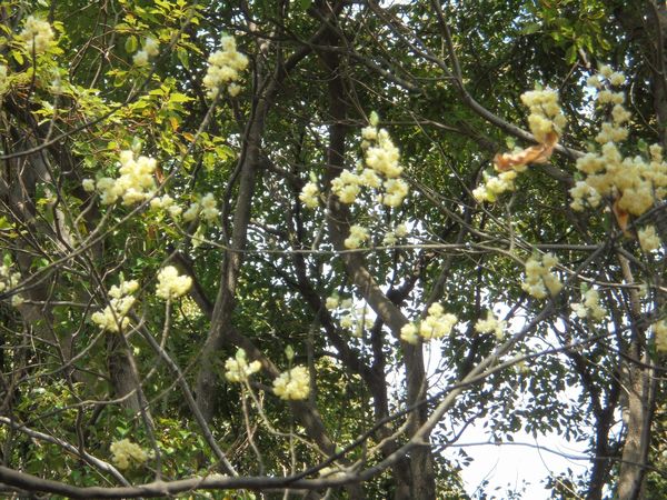 裏山の林間で「アオモジ」の花が綺麗に咲いている。青文字はクスノキ科の樹木で樹高は5m近く伸びる。原産地は台湾やマレーシア付近だという。日本では昔は楊枝(ようじ)の材料として使われていた。我家では栴檀(センダン)の樹の下に植えてあるので細く長く伸びている。樹高が凡そ5mくらいの上部に黄色い花がびっしりと着いている。芳香を放つというが、高い所で咲いているので香りは分からない。近くの林間では日向水樹(ヒュウガミズキ)や馬酔木(アセビ)、椿(ツバキ)、樒(シキミ)、連翹(レンギョウ)などが咲いている。
