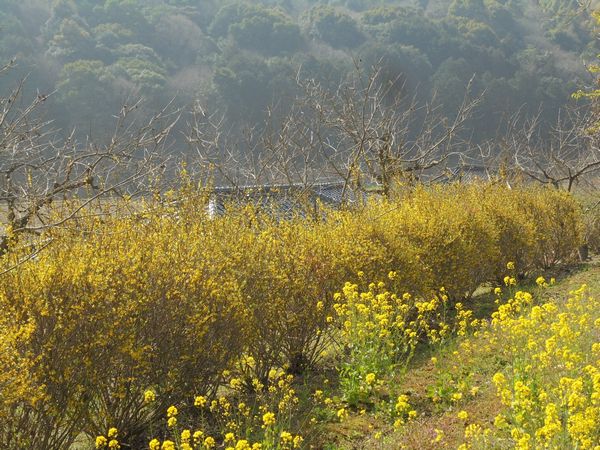 一雨ごとに春が近づいている。野山の木々の芽もだいぶ膨らみ今にも展葉しそうな気配である。裏山では「連翹」が咲き始めた。黄色い細かい花をびっしりと着ける。数十年前、韓国ソウルに出かけた際にこの花を初めて見た。この黄色い花は何だろうか?と思い、帰って園芸店を覗いてみたらレンギョウという花木だと分かった。さっそく、苗を2、3本買い植え付け、その後は挿し木をして増やし、今では裏山の各所で咲いている。早春を彩る花の仲間である。