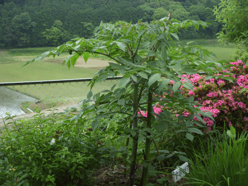 皇帝ダリアがグングン勢いを増して来た。今年は寒波の影響で(結局)活着したのは最終的に7本のみ。今冬は少し植え床の準備を丁寧にし寒さ対策に万全を期したい。