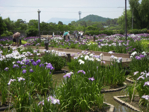 この暑さでは炎天下の作業は出来ないので…午後からT町の菖蒲園に出かける。毎年、「しょうぶ祭り」に合わせて出かけるのだが、人でごった返すため今年は1日早い今日(金曜日)出かける。それでも人出はかなり多く、老人施設(デイサービス等?)からのお客さんだろう、車椅子誘導付きのお客さんが目立った。今年は春先の冷え込みでショウブの開花が少し遅れているとか。