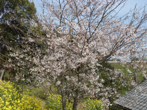 我家の裏山には10本ほど「ソメイヨシノ」が植わっているが(今を盛りに)ピンク色の花を(見事に)咲かせている。朝晩は寒が残るので(今年は)例年よりも花が長持ちする気配である。ところで(先日)連れ合いの友人から絵手紙(葉書)をいただいた。それには水彩画入りで、