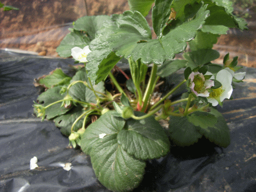 今年初めて「いちご」栽培に挑戦。自家消費なのでほんの少面積だが(トンネルハウス内で)白い花が咲き、実が次から次へと着いている。一日毎に果実が太るのを観察するのは楽しいものだ。