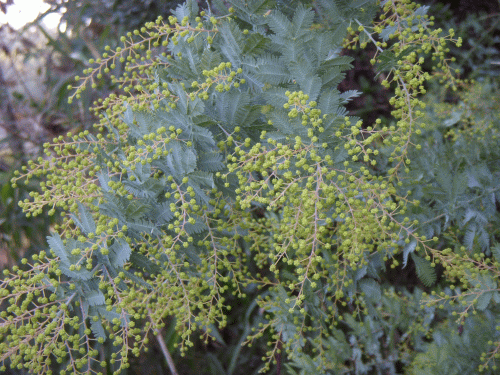 家の周辺に7~8本植えてある「アカシア」の花が今にも咲きそうだ。数年前に小苗を求め育てた樹だが随分と大きくなった。ミモザアカシアという部類である。ビッシリと花叢状に枝が重く垂れ、そこへ黄色い綿を被ったように可憐な花が咲く。