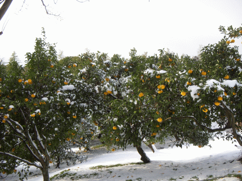 ここ数日雪を被った八朔の樹も今日は解け黄色い実が鮮やかだ。園への小道も園内も2月の声を聞くと(そろそろ)雑草との戦いが始まる。草との戦いを考えれば(我が家では)9月の稲の取り入れ時期~厳寒期までの半年間が束の間の休戦。まもなく戦闘は開始される。