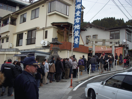 正午過ぎに駐車場付近へ着くも道路は渋滞(加えて)第6駐車場まですべて満車状態。参道も本殿下1百メートルから長蛇の列。本殿に辿り着くまで小1時間を要する。わざわざ高速道路のICを付近に設けたというだけあって年間参拝客は悠に2百万人を超える。本殿の左横に「一念洞」と呼ばれるトンネル風お堂があり(付近は)2千体のお地蔵さんが奉納されている。正面の右側に田村亮子が奉納したという石地蔵があった。オリンピックの金メダルが刻まれていたので「優勝御礼」の奉納だろうか?
