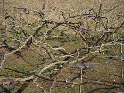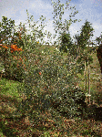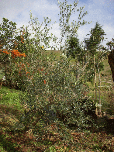 午前の作業は防風林の枝打ち、キウイフルーツ枝誘引、オリーブの剪定(枝間引き)などを行う。我が家のオリーブは現在3本。植え付け後まる4年目になる。昨年は少し花を着けたのでもう数年で結実するだろう。オリーブ(実)はそのままでは食べられないのが難点だ。以前から「渋抜き」方法を気にかけていたが…先日、NHKテレビだったか?小豆島のオリーブ農家の主婦がスペインのオリーブ農家に研修を兼ねホームステイし収穫~加工方法などを実体験している番組があった。日本での加工方法も多種あるようだが、スペインでは風味を無くさずに美味しく漬けるのは(オリーブの実を砕き)何度も何度も水でアクを抜く方法が一番だと言っていた。そこの村はほとんどの農家がオリーブ栽培の住人で自家で漬けたオリーブ漬けはその家庭家庭で独特の味を出しているという。