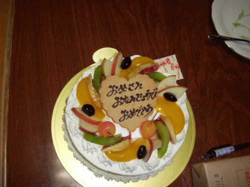 それから滅多に食べないケーキを食べる。「誕生ケーキ」というものはワイワイ言いながら切って食べるのがいい。格別の味である。年甲斐もなくローソクを吹き消しながらデジカメ写真に収まる。今年は色々な事があり変化の年だった。誕生プレゼントやケーキもさることながら、親の誕生日を祝い2人で来てくれる「気持ちの余裕」にまずは一安心。