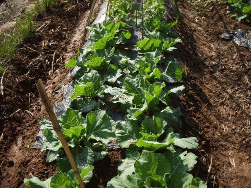 ここ数日の作業→①玉葱苗の定植300本、②青梗菜の蒔きつけ、③大根、ホウレン草の中の除草、④裏山の清掃(草刈りなど)、⑤カンナ、ヒオウギの移植など。