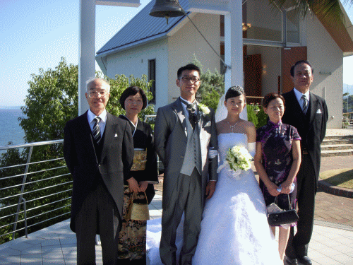 我家では長男が結婚。挙式~披露宴~二次会と一連の行事を隣県B市のホテルで行う。関東I県K市、T都I区やS区、H県K市、中国S市などから遠来の親族一統が集まってくれたので泊まりがけで懇親するにはいい機会。来賓は嫁さんが学生時代から長年お世話になった大学の先生ご夫妻などごく数名。(出席者は少人数ながら)生バンド演奏や民舞などがあり心温まる手づくりの「人前結婚式」が出来た。夜の懇親会では貸切カラオケで歌、福引などで大いに盛り上がった。それもこれも馳せ参じてくれた皆さんのお陰だ。若夫婦はこれより独立した一家族。今後は自己責任の世界。独身気分はリセットで気合を入れ頑張って欲しい。たとえつましくても夫婦仲良く末永く幸せに…と願うばかりだ。
