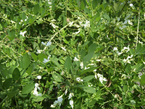 庭の「白萩」の花が満開になった。山野にある紅萩は一般的に良く知られている。ヤマハギ(紅萩)はパイオニア植物とも呼ばれる。根粒菌との共生で、どんな痩せ地にも良く育つ。林業関連の仕事を担当していた時、林道や砂防や治山工事の後に法面へ萩を植栽したことがある。