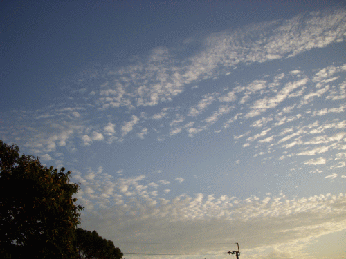 今朝は4時に目が覚めた。外はひんやり。半袖ではもう寒いほど。5時半頃に東の空が明るくなりはじめ朝焼けがとても綺麗。空気は澄み雲の形はもう秋色濃い。