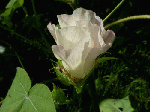 5月中旬に種を蒔いておいた「綿花」に花が咲き始めた。観賞用にと栽培を思い立ちポット苗10数本育てたが、定植後に草刈り等の際根っこから数本切ってしまい(最終的に)残ったのが5本くらい。昨日覗いてみたらクリーム→ローズ色と花は変化するよう。綿花は観賞用のためか?草丈が30~40cmくらいと比較的低い。摘芯をすれば横から枝が出て来て花(実)がたくさん着くのだという。