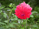 庭の一角に植えてある「ダリア」が今年も咲いた。ダリアはキク科の多年草。ヤーコンみたいな芋が地中にあって毎年決まってそこから芽を出す。草丈は1mくらいに伸張するが少し施肥した方が勢いが良くなるかも知れない。それにしても真っ赤なダリアは夏の太陽に似合う。暑さには強いはずで原産地は中央アフリカやメキシコだという。(今では)世界各地で園芸花として愛好され、交雑や選抜によって3万種以上の品種が栽培されていると言われる。