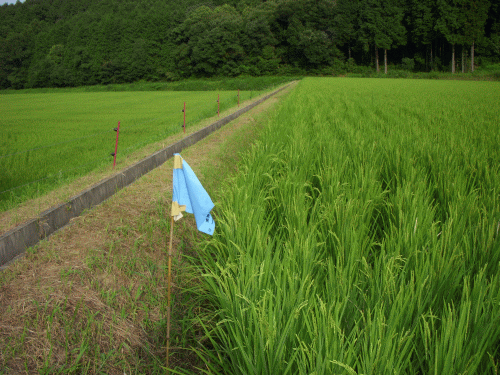 猪除け「電気柵」を張り(延長は600mくらいか?)お陰で毎朝、毎晩田廻りする羽目になってしまった。(猪は日中に出没することは滅多に無いので)夜だけ電流が流れる装置、時間設定タイマーなども付いてはいるが実際に自分の目で被害状況を確認する方が安心する。稲の収穫まであと1ヶ月余、当分の間は田廻りは欠かせない。