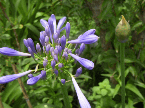 庭の「紫君子蘭」(別名=アガパンサス)が咲いた。数年前より屋敷周りに数箇所植えてある。南アフリカ原産とかで明治中期に日本に渡来したらしい。薄紫の優しい花である。球根で分けて増やす。花は地際からスーッと細い花茎が伸び(1.2~1.5mくらい)先端に葱坊主みたいな形をした花が着く。花は放射状、ミニのユリをちりばめたような格好だ。英語名を「アフリカンリリー」と呼ぶが、DNA解析ではユリとは関係がなく「彼岸花」の仲間に近いのだという。