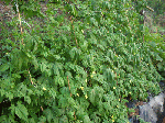 今年は種から育てて垣根仕立てをし立派に育った。自然生えも結構いい実がなるようだ。秋に真っ赤に熟した実が自然烈開。種が真下に落ちそこから毎年芽を出す。亜熱帯性の植物だけに地温が25℃以上あがらないとなかなか芽が出ない。