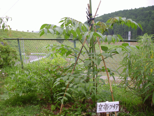 農舎前の「皇帝ダリア」がぐんぐん成長している。この旱魃にもめげずせっせせっせと水遣りを欠かさなかった結果か?反面、裏山に植えてある2本は水遣り不足がたたり背丈はまだ低い。