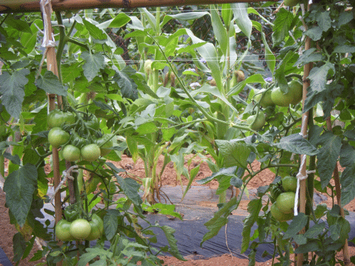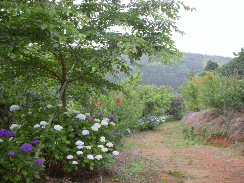 本日の作業→①田んぼの見回り、②添竹切り、③ゴーヤ、トマト、ナスの誘引、④ブラックベリーの手入れ、⑤紫陽花の手入れ、⑥えだまめ(夏播)播種など。