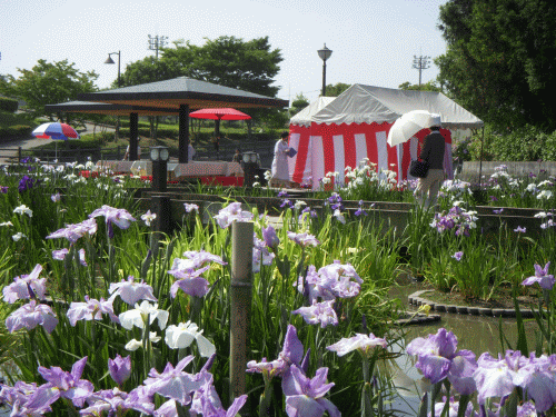 我家から車で40~50分のM町K(国分寺近く)で開催されている「しょうぶ祭り」に出かける。例年、駐車場が満杯状態なのと日中の陽射しに参ってしまうため、今年は早めに出かけたので会場広場(テント村)は準備中のところが多かった。でもそれなりに買い物の楽しさはあった。