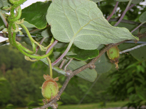 キウイフルーツ(今年は更新のため古樹をばっさりと枝切りし間に幼木数本を植えた)の枝にわずかに着いている実が親指大に成長。つい先日、開花していたのだが…時間の流れ、自然の営みを実感。茄子もトマトも南瓜も知らず知らずのうちに成長している。