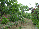 先日板切れと小杭を買って看板を作った。紫陽花の咲く道を「あじさい小径」と名付けた。アジサイには雨が似合う。今年はまだ雨が少なく(入梅前の為)本来の花相ではない。花弁や葉が雨滴に濡れて生き生きするのは6月中旬になってからだろう。