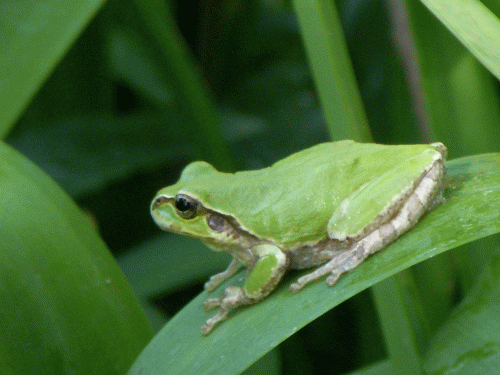 今朝、庭のホタルブクロの花を見ていたら「雨蛙」が一匹葉に留まっていた。そろそろ雨蛙の登場時期だ。雨蛙は両性類でアマガエル科。熱帯地方~温帯地方まで生息し実に650種ほどの仲間がいるという。肌は黄緑色で保護色になる。体長は2~3cmくらい。田植え時期のこの頃、声帯から出した声を鳴嚢で共鳴させクワックワッ(ゲッツゲッツとも聞こえる)と鳴き夜中などはうるさいほどだが慣れれば心地よい季節の風物詩となる。天敵はサギなどの鳥類やヤマカガシなどの蛇類だという。