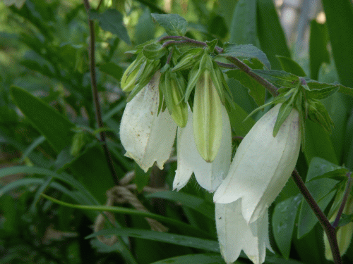 庭のホタルブクロに花が咲いた。「蛍袋」はキキョウ科の多年生草木だから毎年決まった場所に芽を出す。白系、ピンク系などがあり釣鐘状の上品な花を着ける。英語ではベルフラワーというらしい。蛍が出る頃に咲くので(昔)子供達が蛍籠代わりに捕った蛍を釣鐘状の花の中に入れ持ち帰ったことから「蛍袋」と名付けられたという説がある。真偽のほどは分からない。我々の小さい頃は蛍が川原に乱舞し蛍捕りは遊びの一つだった。よく麦藁を編んで「蛍籠」作りをしたものだ。今はその蛍も(毎年)数匹しか見かけなくなった。やはり温暖化や環境汚染のせいだろうか?