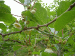 それらの樹を昨冬思い切ってバッサリ強剪定。間に今春新しい苗木を数本購入し植えた。その幼木も今のところ生育がきわめて順調。ところでキウイの代表品種は「ヘイワード」、「ブルーノ」、「アボット」などがある。最近ではイエロー系の「レインボーレッド」や「ゴールドキウイ」などが出回っている。キウイは原産国中国から20世紀初頭に南半球のニュージランドへ移入され(今では)ニュージランド産のキウイフルーツが世界市場を席巻している。我国では福岡県立花町などが主産地で青果と共にワインなどにも加工されている。