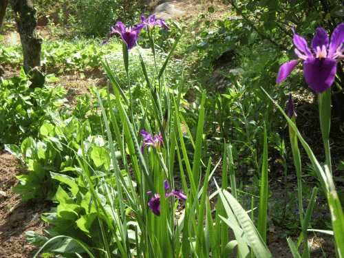 帰宅後家周りの農作業や庭手入れ。昨冬、畑の端に植え替えした「オクラレルカ」に濃紫の花が咲いた。常夏の(沖縄県)大宜味村はオクラレルカの群生で知られるとか。オクラレルカはアイリスの仲間でアヤメ科に属しアヤメやショウブに比べればやや草丈が高く葉は長い。よく(活花の)花材として使われる。先年(華道が趣味の)連れ合いがどこからか株を分けて貰い少しずつ増やしたもの。