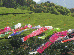 毎年宇佐市内外から大勢の藤見客が訪れる。今回訪ねてみると(昨年は無かった)大駐車場が新たに藤園横に整備されていた。茶園には大きな鯉幟がたなびき茶葉の緑が眩しい。茶工場の生産ラインでは製茶が盛んに行われていたが「新茶」販売は来週からだという。