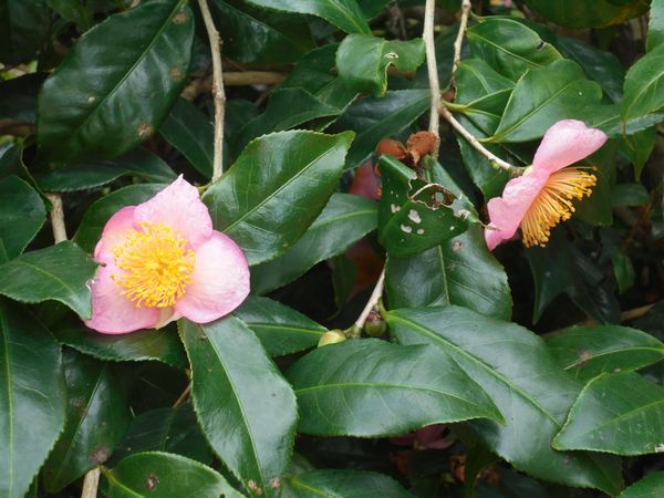 10月も中旬になり、朝晩はだいぶ涼しくしのぎやすくなった。我家の裏山の畑の横に植えてある「開炉椿」に花が咲き始めた。薄桃色の綺麗な花である。カイロツバキと名前が付いているが、椿の仲間ではなく茶樹の仲間になる。なるほどよくよく観察すれば、花の形は確かにお茶の花に似ている。10月のこの時期になると、茶道をやっている方々の間では(冬に備え)炉開きをする。この炉開きをする頃に咲くためカイロツバキの名が付いたという。