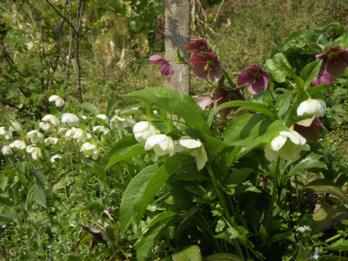 屋敷周辺に植えてあるクリスマスローズの花が今を盛りに咲いている。一説ではこの花は「冬の貴婦人」とか呼ばれ、クリスマスの頃に咲くのだとか。我家では4、5月が見頃だ。鉢植えでなく庭に直接下ろした(露地栽培)からだろうか?