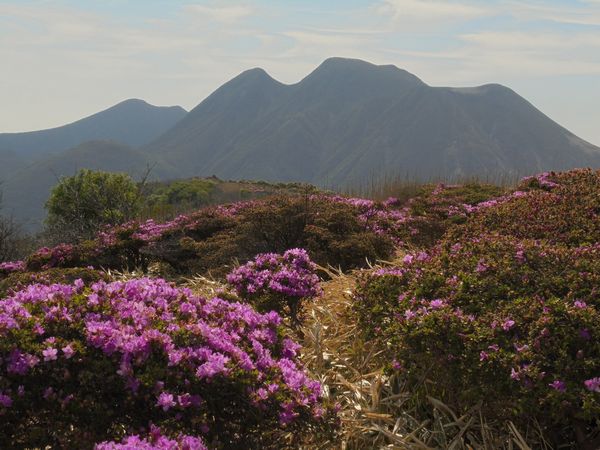 梅雨の晴れ間を縫って久しぶり山登りに出かけた。まだミヤマキリシマ(ツツジ)満開には少し早いかな?と思ったが、天気模様と人出を考慮し、あえて6月1日(平日)に出かけることにした。早朝に家を出たが、登山口にある駐車場はほぼ満杯だった。中には路肩に駐車した車の数も多く見られた。福岡、北九州、大分、熊本、佐賀など近隣各県からのナンバーが多かった。