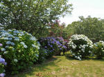 我家の裏山では紫陽花が見頃を迎えている。十数年前から少しずつ挿し芽苗を中心に数百本が植わっているが、樹齢を経てかなりの丈になっている。目下、芽摘みや花摘みを行っている。冬季剪定を行ってはいるが、それでも樹勢が旺盛で低く抑えるのが大変である。昔からの額紫陽花(ガクアジサイ)、山紫陽花(ヤマアジサイ)を中心に、品種ものの墨田花火(スミダノハナビ)、お多福(オタフク)、ダンスパーティー、アナベルなどといったものが彩を添えている。しばらくは楽しめそうである。