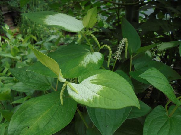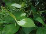 庭の「半夏生」が咲き始めた。半夏生(ハンゲショウ)は別名カタシロバナ(片白花)とも呼ばれる。1年のちょうど中間あたり(梅雨の末期)に咲く。葉っぱの一部が白く変わり、先端にはヒゲ状の穂を着ける。ドクダミ科の草花で、地下茎により繁殖し、毎年決まった場所から芽を出す。
