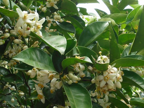 我家の裏山では蜜柑の花が咲き、付近を通っただけでぷーんと良い香りが漂う。緑の枝の隙間に白い可愛い花がびっしりと着いている。花の蜜を求め、ニホンミツバチたちが寄って来る。樹の下に居ると蜂の羽音がうるさいほどにブンブンと聞こえて来る。
